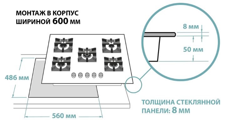 Панель газ. Гефест ПВГ 2342 Черн (стекло, 5кон)