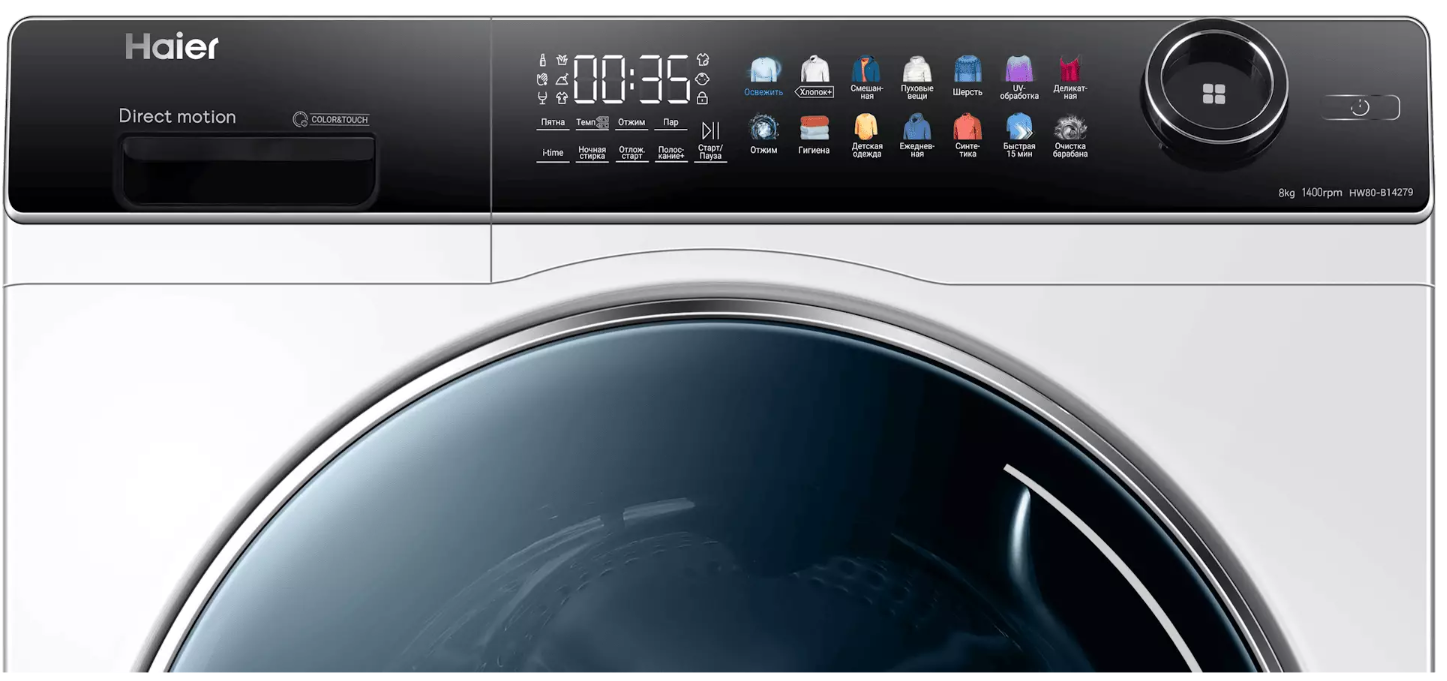 Программы: освежить; синтетика; деликатная; шерсть; ежедневная стирка; отжим; гигиена; детская одежда; хлопок+; смешанная; пуховые вещи; быстрая 15 мин.; очистка барабана.