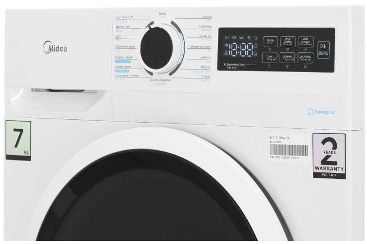 Программы: антиаллергия; быстро 15 мин, быстро 45 мин, деликатная, джинсы, объемные вещи, отжим, очистка барабана, полоскание+отжим, синтетика, смешанные ткани, стирка с паром, хлопок, шерсть, эко 40-60°С.