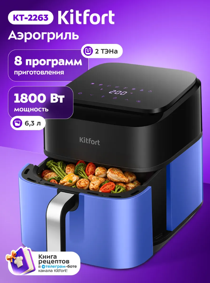 Программы приготовления: картофель фри; мясо; Куриные ножки; куриные крылышки; Рыба, пицца; выпечка, овощи.