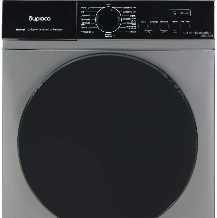 Программы: Хлопок, Деликатная, Шерсть, Интенсивная, Быстрая 42/15 мин, Смешанные ткани, Холодная стирка 20°C, Отжим, Полоскание и отжим; ЭКО, Постельное белье, Спортивная, Детская, Очистка барабана.