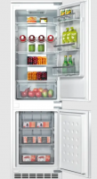 Высота – 185 см, Ширина – 54 см, Глубина – 52 см, Цвет – Белый, Тип – Встраиваемый, Количество дверей – 2, Полезный объем – 270, Уровень шума – 41 Дб, Полезный объем холодильной камеры – 186 л, Разморозка холодильной камеры – NoFrost, Полки – Закаленное стекло, Расположение морозильной камеры – Нижнее, Полезный объем морозильной камеры – 64 л, Мощность замораживания – 2 кг/сутки, Суперзамораживание – Есть, Энергопотребление в год – 267 кВт/ч, Разморозка морозильной камеры – NoFrost, Климатический класс – SN-T, Возм. перевешивания двери – Есть, Время сохранения температуры без электричества – 18 ч., Температура в морозильной камере – От -16 до -24 °C, Режим "Отпуск" – Есть, Режим «SMART» – Есть