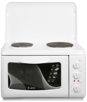 Высота – 40 см, Ширина – 55 см, Глубина – 37 см, Цвет – Белый, Количество конфорок – 2 шт, Покрытие рабочей поверхности – Эмалированная сталь, Материал конфорок – Чугун, Термоуказатель духовки – Есть, Тип духовки – Электрическая, Полезный объем духовки – 18 л