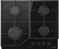 Высота – 4 см, Ширина – 60 см, Глубина – 51 см, Цвет – Чёрный, Количество зон нагрева – 4, Автоматический электроподжиг – Есть, Газконтроль – Есть, Материал решеток – Чугун, Управление – Поворотные переключатели, Рабочая поверхность – Закаленное стекло, Тип поверхности – Встраиваемая независимая