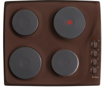 Высота – 7,8 см, Ширина – 59 см, Глубина – 52 см, Цвет – Коричневый, Количество зон нагрева – 4, Управление – Поворотные переключатели, Рабочая поверхность – Эмалированная сталь, Тип поверхности – Встраиваемая независимая, Индикатор включения и выключения – Есть, Экспресс-конфорка – Есть, Класс энергопотребления – А, Вес – 12 кг