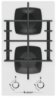 Высота – 10 см, Ширина – 30 см, Глубина – 53 см, Цвет – Белый, Газ-контроль – Есть, Автоматический электроподжиг – Есть, Количество зон нагрева – 2, Материал решеток – Чугун, Количество решеток – 1, Управление – Поворотные переключатели, Рабочая поверхность – Закаленное стекло, Тип поверхности – Встраиваемая независимая, Вес – 6 кг