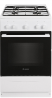 Высота – 85 см, Ширина – 50 см, Глубина – 58,5 см, Цвет – Белый, Количество конфорок – 4, Газ-контроль – Духовки, Тип духовки – Газовая, Полезный объем духовки – 52 л, Покрытие рабочей поверхности – Эмалированная сталь, Внутренняя поверхность духовки – Эмалированная сталь, Количество стекол дверцы духовки – 2, Ящик для принадлежностей – Откидная крышка, Регулировка высоты плиты – Есть, Тип управления – Механический, Материал решеток – Стальные, Материал фасада – Эмаль