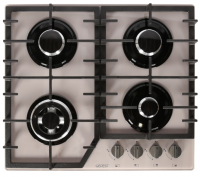 Высота – 10 см, Ширина – 60 см, Глубина – 52,5 см, Цвет – Графит, Количество зон нагрева – 4, Автоматический электроподжиг – Есть, Газконтроль – Есть, Материал решеток – Чугун, Управление – Поворотные переключатели, Рабочая поверхность – Закаленное стекло, Тип поверхности – Встраиваемая независимая, Фиксированное положение "малое пламя" – Есть, Комплект сменных сопел – Есть, Накладка для посуды малого диаметра – Есть