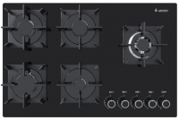 Высота – 10 см, Ширина – 80 см, Глубина – 52,5 см, Цвет – Чёрный, Количество зон нагрева – 5, Автоматический электроподжиг – Есть, Газконтроль – Есть, Материал решеток – Чугун, Управление – Поворотные переключатели, Рабочая поверхность – Закаленное стекло, Тип поверхности – Встраиваемая независимая, Двухзонная горелка варочной поверхности – Есть, Фиксированное положение "малое пламя" – Есть, Комплект сменных сопел – Есть, Накладка для посуды малого диаметра – Есть, Решетка варочной поверхности – 3 шт.