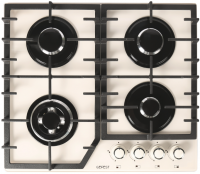 Высота – 10 см, Ширина – 60 см, Глубина – 52,5 см, Цвет – Кремовый, Количество зон нагрева – 4, Автоматический электроподжиг – Есть, Газконтроль – Есть, Материал решеток – Чугун, Управление – Поворотные переключатели, Рабочая поверхность – Закаленное стекло, Тип поверхности – Встраиваемая независимая, Комплект сменных сопел – Есть, Накладка для посуды малого диаметра – Есть, Фиксированное положение "малое пламя" – Есть